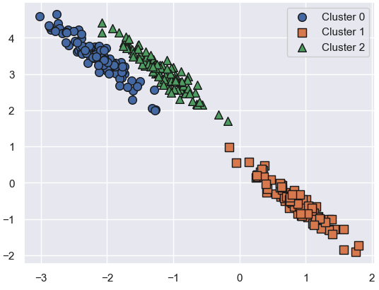 - 군집이 길게 늘어진 타원형 분포