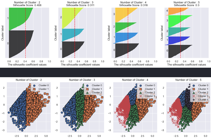 'Silhouette Score :' + str(round(sil_avg,3)) )